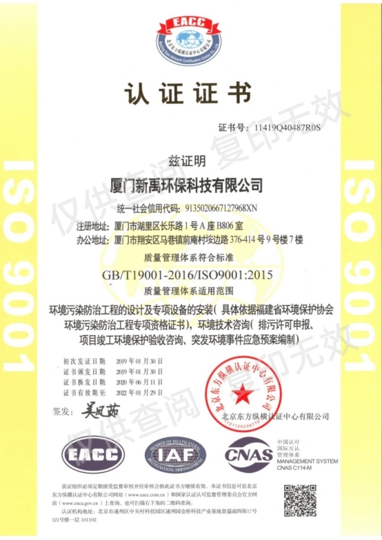 環(huán)境管理體系認(rèn)證證書